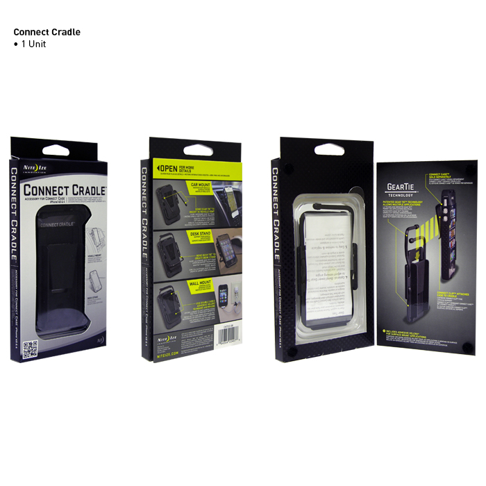 The Connect Cradle is a functional accessory to fit either the Connect Case for iPhone® 4S/4 or iPhone 5S/5 and 5C. It allows you to secure your Connect Case to any vehicle vent, create a desk stand, or a convenient docking station on any smooth, flat surface.