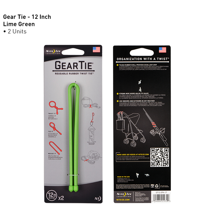 With its strong, bendable wire interior and sturdy rubber exterior, the Nite Ize 12" Gear Tie is the perfect size for bundling, connecting, and organizing everything from workshop tools to children's toys. With a simple wrap-and-twist motion, it keeps appliance wires, cables and cords tangle-free, organizes tools, art supplies, and sporting equipment, binds and neatens kitchen gadgets, craft supplies, toys, and more. Reusable, water-proof, available in 2 packs.