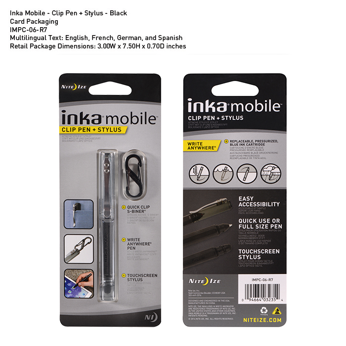 Like its little cousin, the dual-function Inka Mobile Clip Pen + Stylus is designed to go where you go and write where you need it to write. Made of durable polycarbonate and carbon fiber that's tough, lightweight, and corrosion-resistant, its cap is fitted with a replaceable 420-grade stainless steel pocket clip that securely attaches to your shirt, jacket, purse, or briefcase pocket. This easy-access, quick use pen quickly transforms into a full size pen or stylus by simply snapping the cap onto the end of the pen when writing.